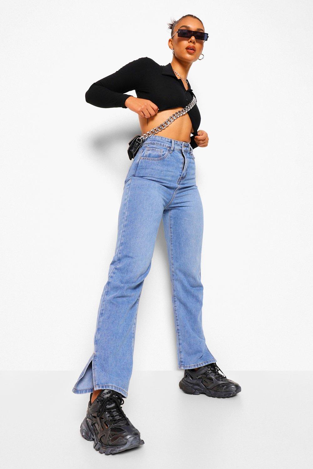 High Waisted Split Straight Leg Jeans boohoo AU Very well made.