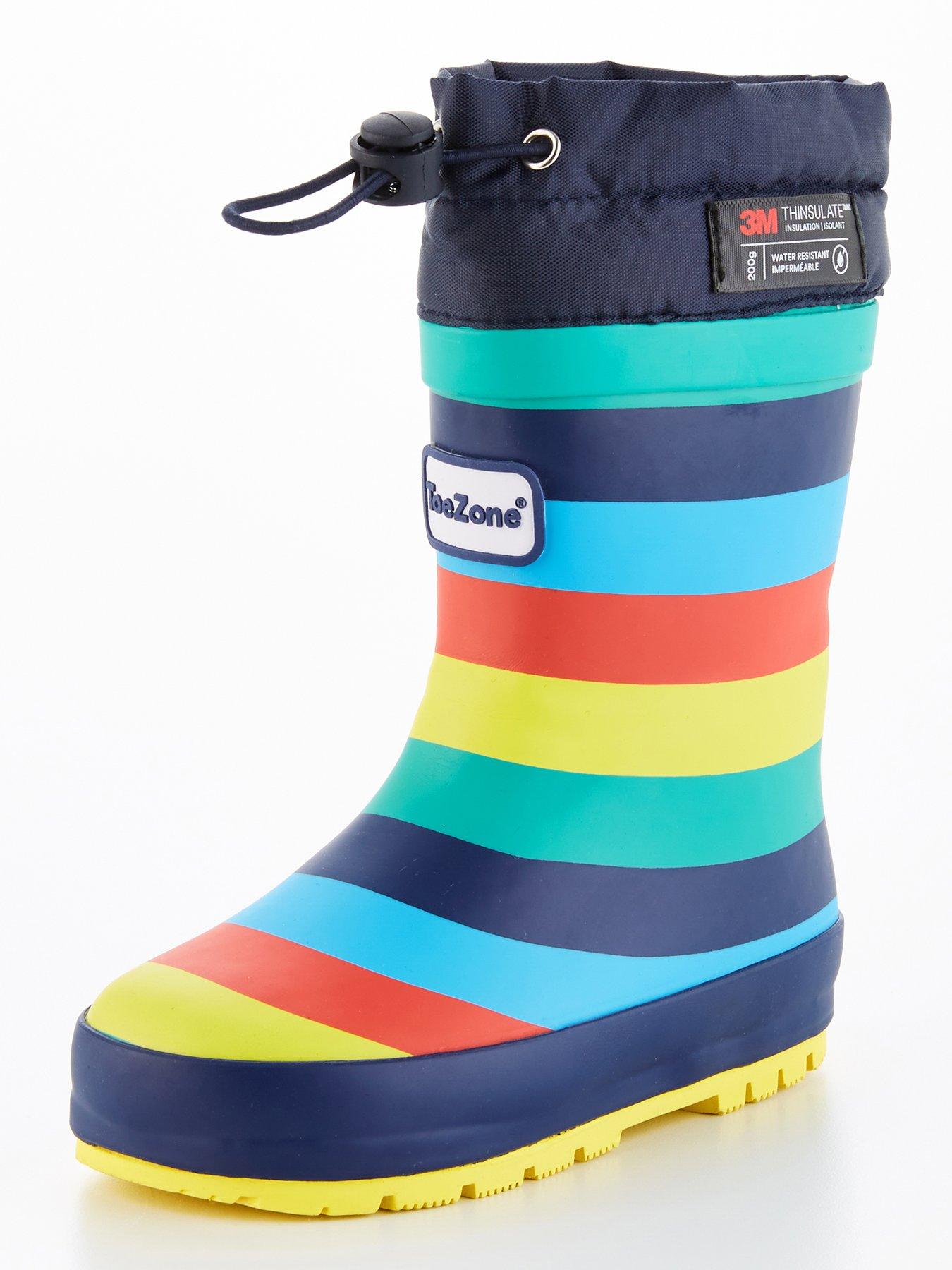 ToeZone Younger Boys Thinsulate Insulation Stripe Wellies Multi Very well made.