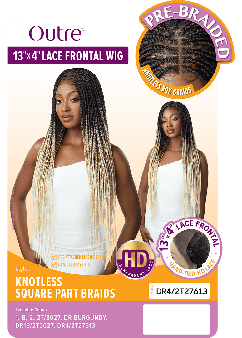 Amazon Outre 13x4 Lace Frontal Wig Pre Braided Knotless Box Braids HD Transparent KNOTLESS SQUARE PART BRAIDS DR1B 2T3027 Beauty Personal Care Very well made.