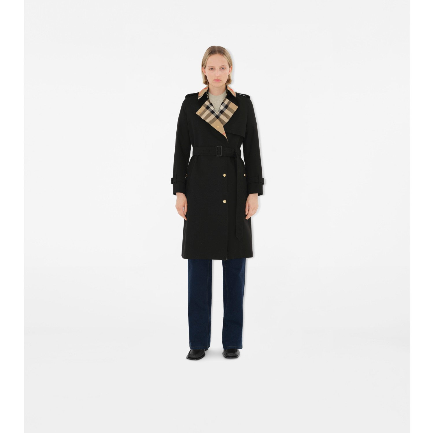 Long Check Collar Gabardine Trench Coat in Black Women Cotton Gabardine Burberry Official Very well made.