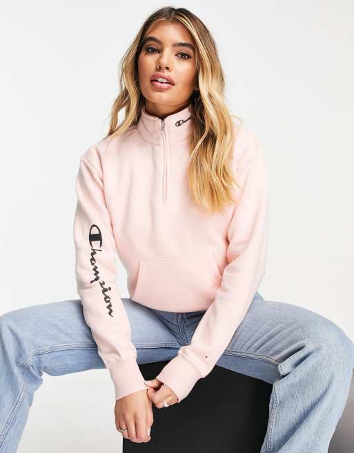 Champion sleeve logo half zip in pink ASOS Very well made.