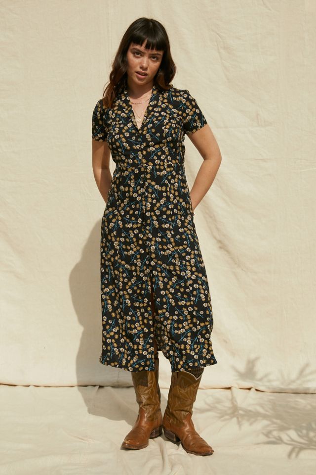 UO Tessie Black Ditsy Floral Midi Dress Very well made.