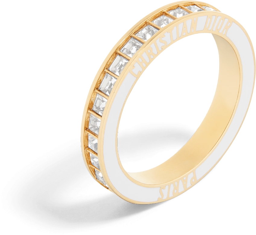DIOR Night Code Ring Gold Finish Metal With White Crystals And White Lacquer Size S Women Very well made.