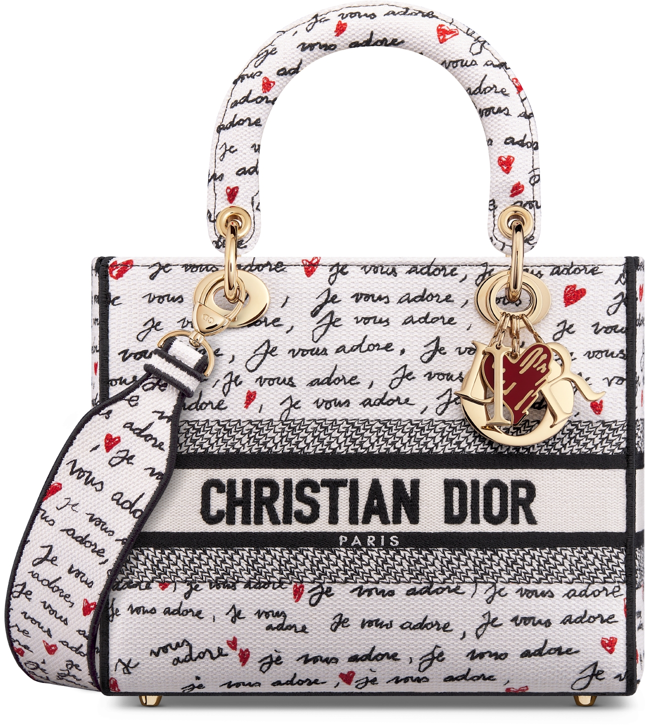 DIOR Dioramour Medium Lady D Lite Bag White Embroidery With Black And Red Je Vous Adore Motif Women Very well made.