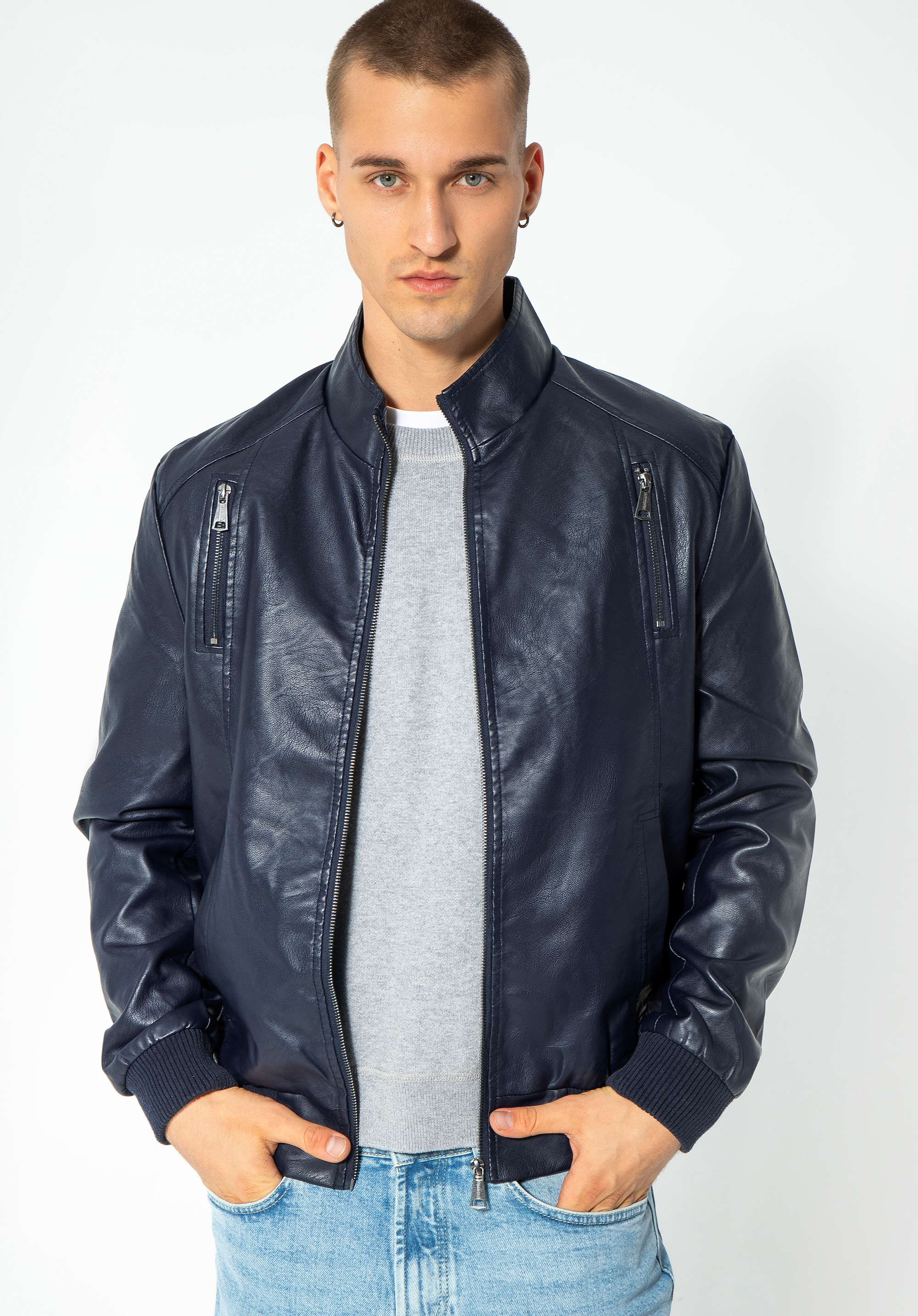 WREESH Mens Faux Leather Jackets Stand Collar Zipper Motorcycle Jacket Slim Windproof Jacket Riding Club Jacket Blue Walmart Very well made.