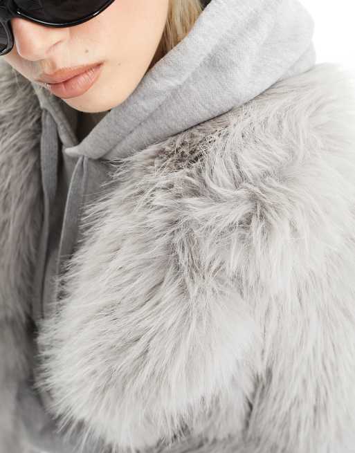ASOS DESIGN faux fluffy fur jacket in gray Very well made.