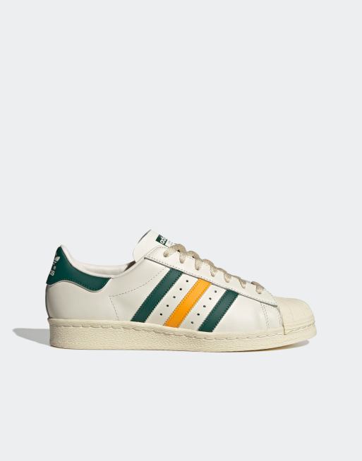 adidas Originals Superstar Sneaker in WeiB und Grun mit gelben Streifen Very well made.