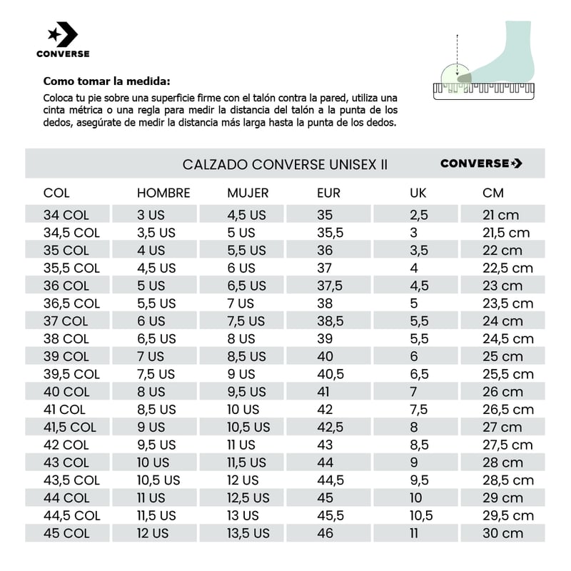 Guia tallas Converse equivalencia de tallas y tabla de tallas ecool Very well made.