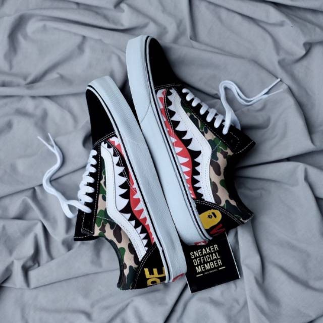 Jual Sepatu BAPE x Vans Old Skool WGM Shark Mount Mouths Tooth Camo BNIB Original Premium Shopee Indonesia Very well made.