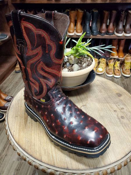 HW R 9961 ST HERENCIA WORK BOOTS OSTRICH PRINT BLACK SHERRY SAFTY TOE IMIT AVE CASCO ACERO Very well made.