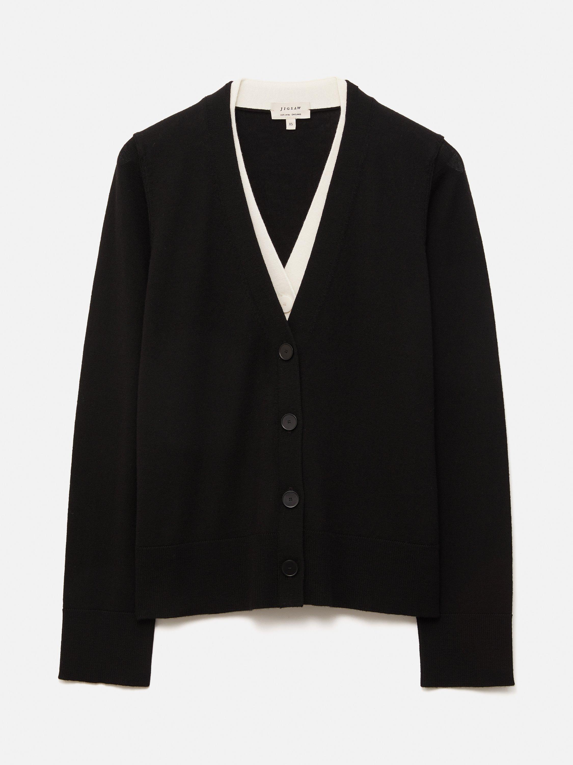 Jigsaw Merino Wool Double Panel V Neck Cardigan Black Very well made.