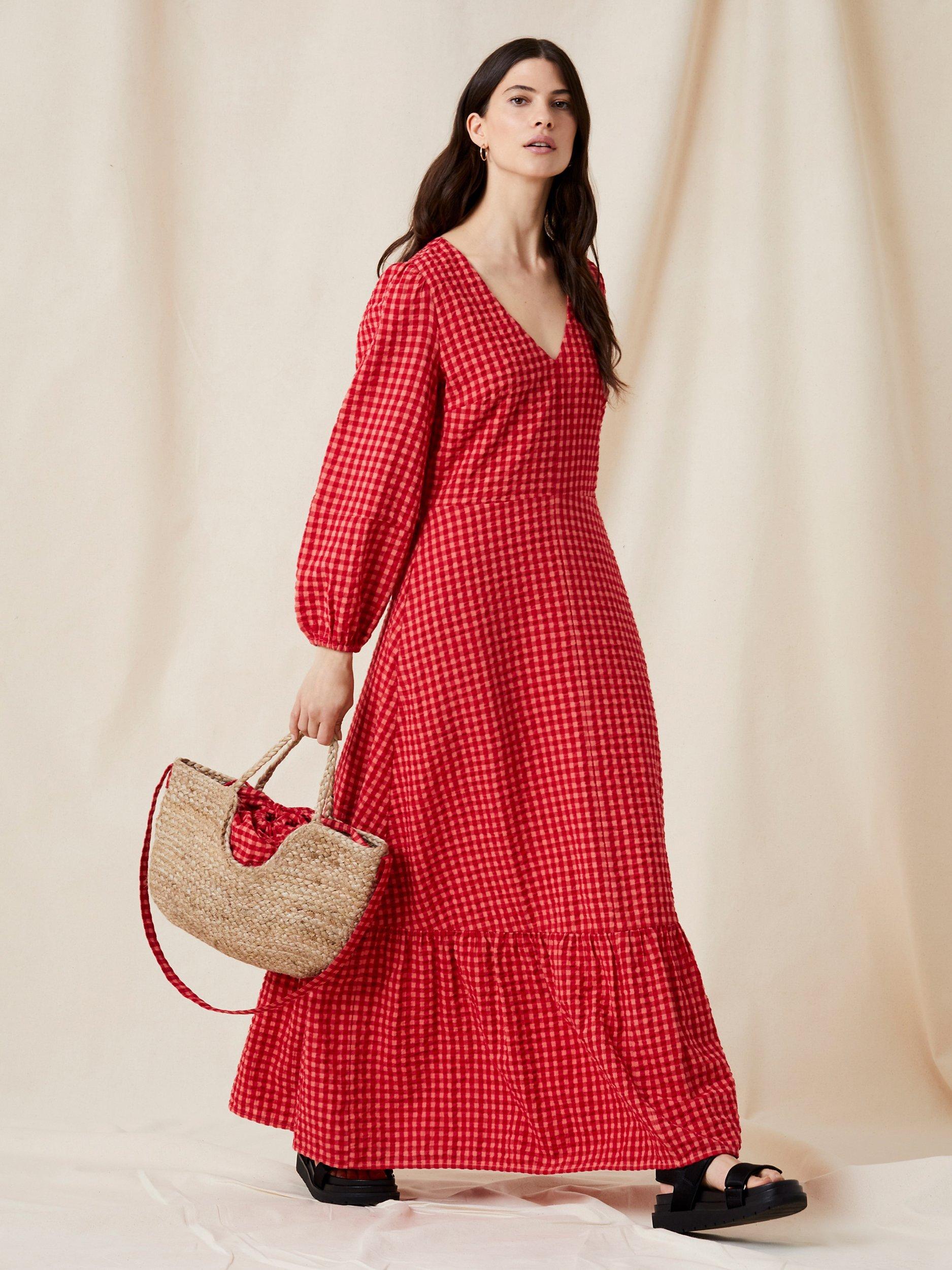 Great Plains Tunis Check Maxi Cotton Dress Crimson Hot Coral Very well made.
