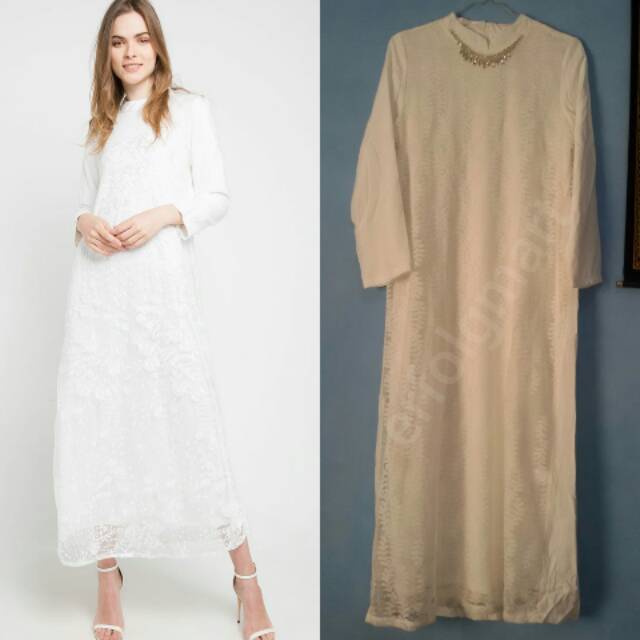 White Gamis by Eprise Brokat Maxi Dress Long Dress Putih Lengan Panjang Very well made.