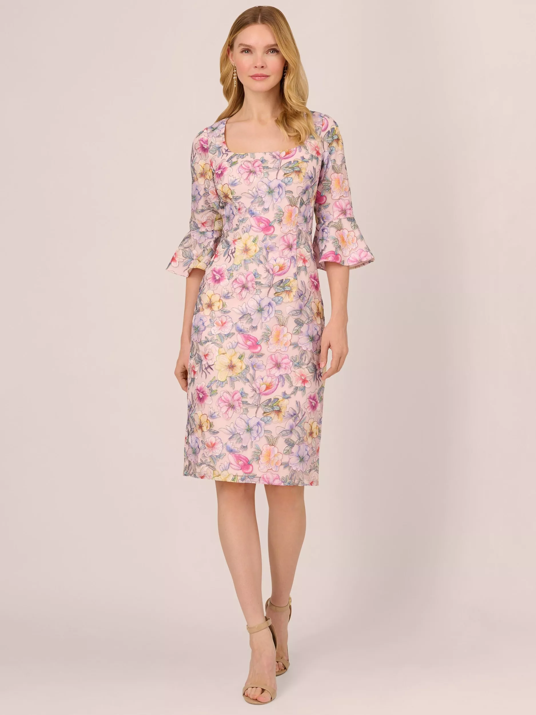 Adrianna Papell Floral Knee Length Dress Blush Multi Very well made.