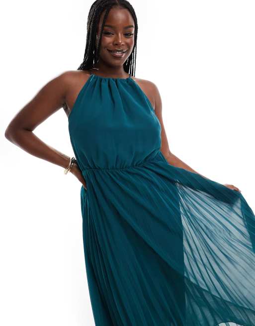 ASOS DESIGN Curve pleated chiffon midi dress with halterneck in bottle green Very well made.