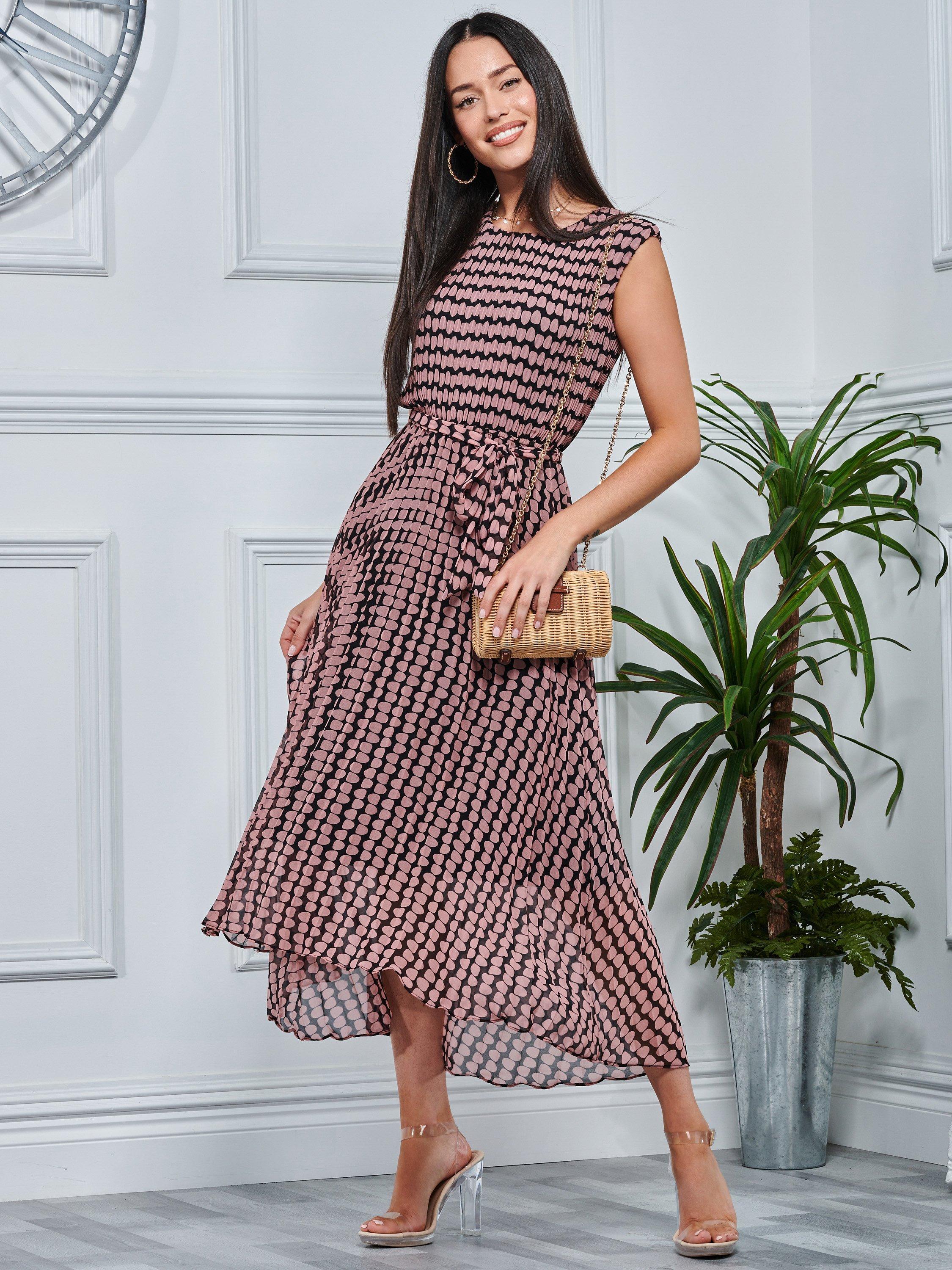 Jolie Moi Pleated Chiffon Midi Dress Pink Geo Very well made.