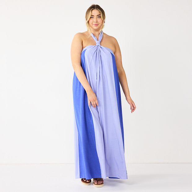 Berrylush Women Plus Size Solid Purple Halter Neck Sleeveless Front Cutout Flared Maxi Dress Very well made.
