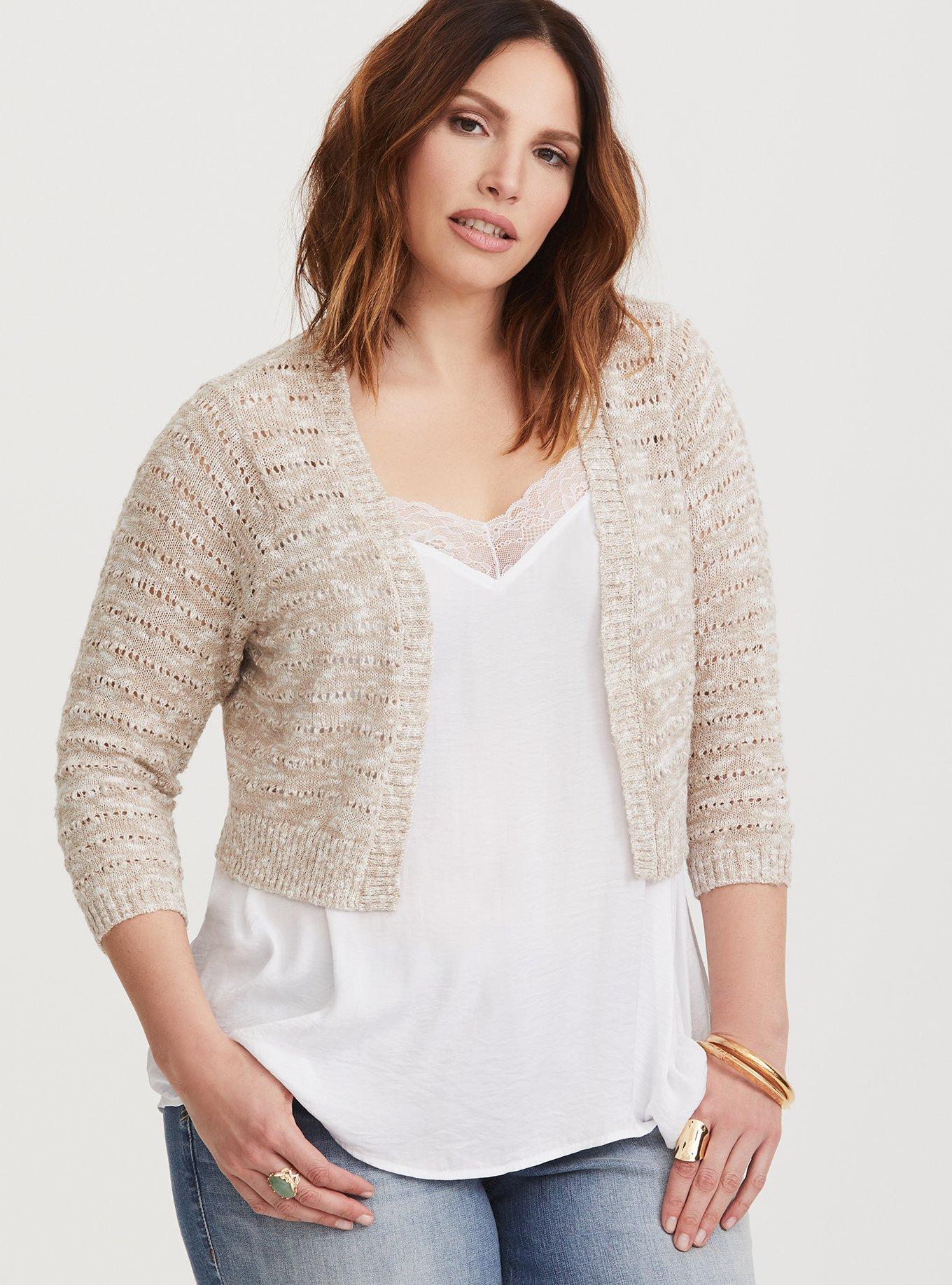Plus Size Ivory Natural Pointelle Knit Shrug Torrid Very well made.