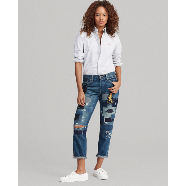 Ralph Lauren Avery Patch Detail High Rise Ankle Boyfriend Jeans in Blue Denim Bloomingdale s Very well made.