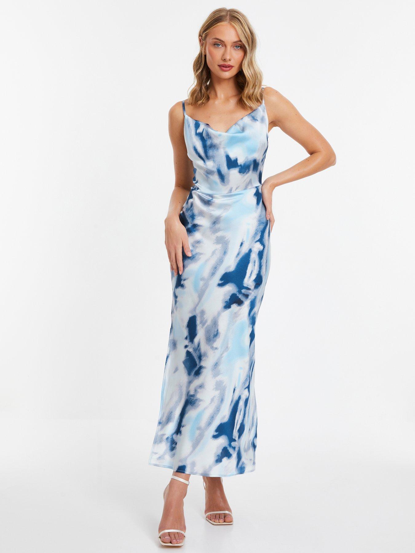 Quiz Blue Satin Marble Print Midi Dress littlewoods Very well made.