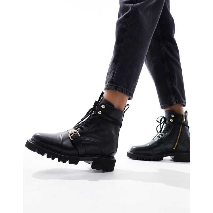AllSaints Tori leather lace up buckle boot in black Very well made.