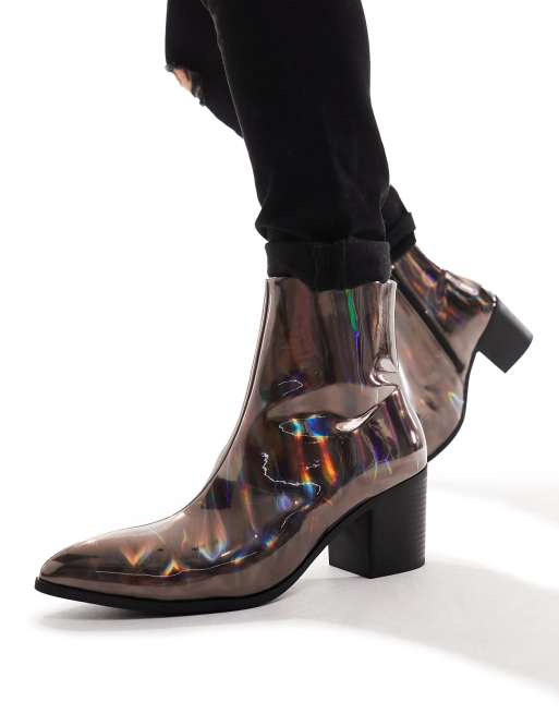 ASOS DESIGN heeled chelsea boots in iridescent faux leather ASOS Very well made.
