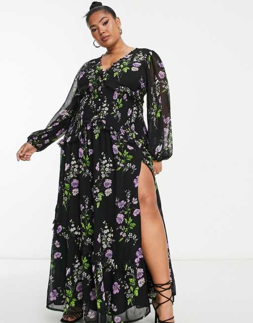 ASOS DESIGN Curve button through pintuck maxi dress in black floral print Very well made.
