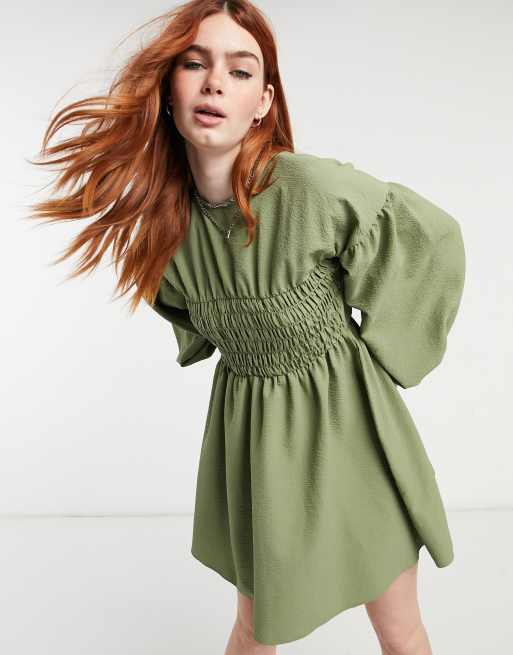 ASOS DESIGN shirred bust mini dress in texture in khaki ASOS Very well made.