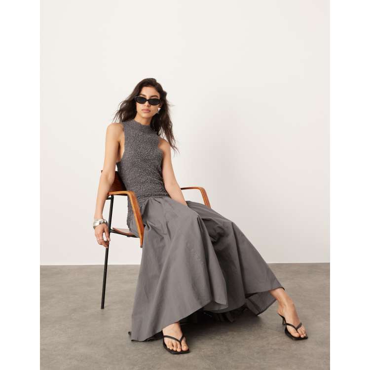 ASOS EDITION cotton shirred high neck midi dress with drop waist in charcoal Very well made.