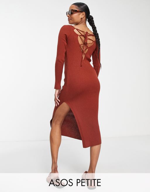 ASOS DESIGN Petite maxi dress with lace up back detail in brown ASOS Very well made.