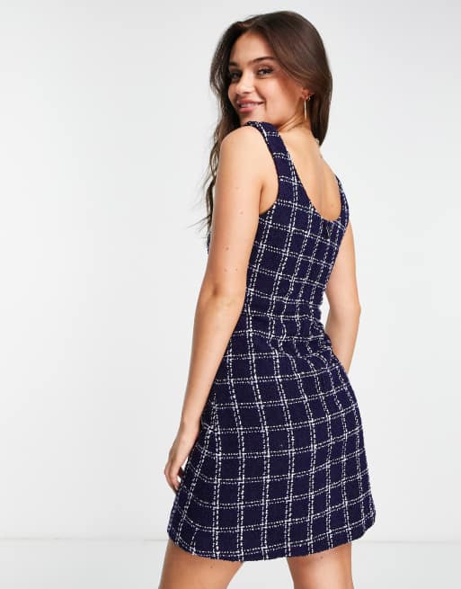 Other Stories tweed a line mini dress in navy check print Very well made.