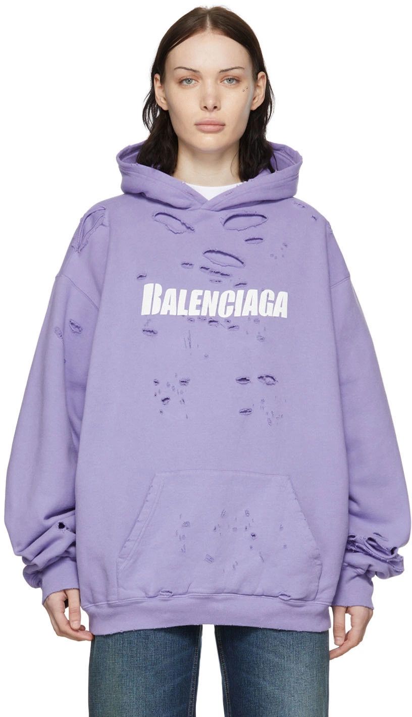 Balenciaga Oversized Distressed Logo Print Cotton Jersey Hoodie S In Purple 40 Off Editorialist Very well made.