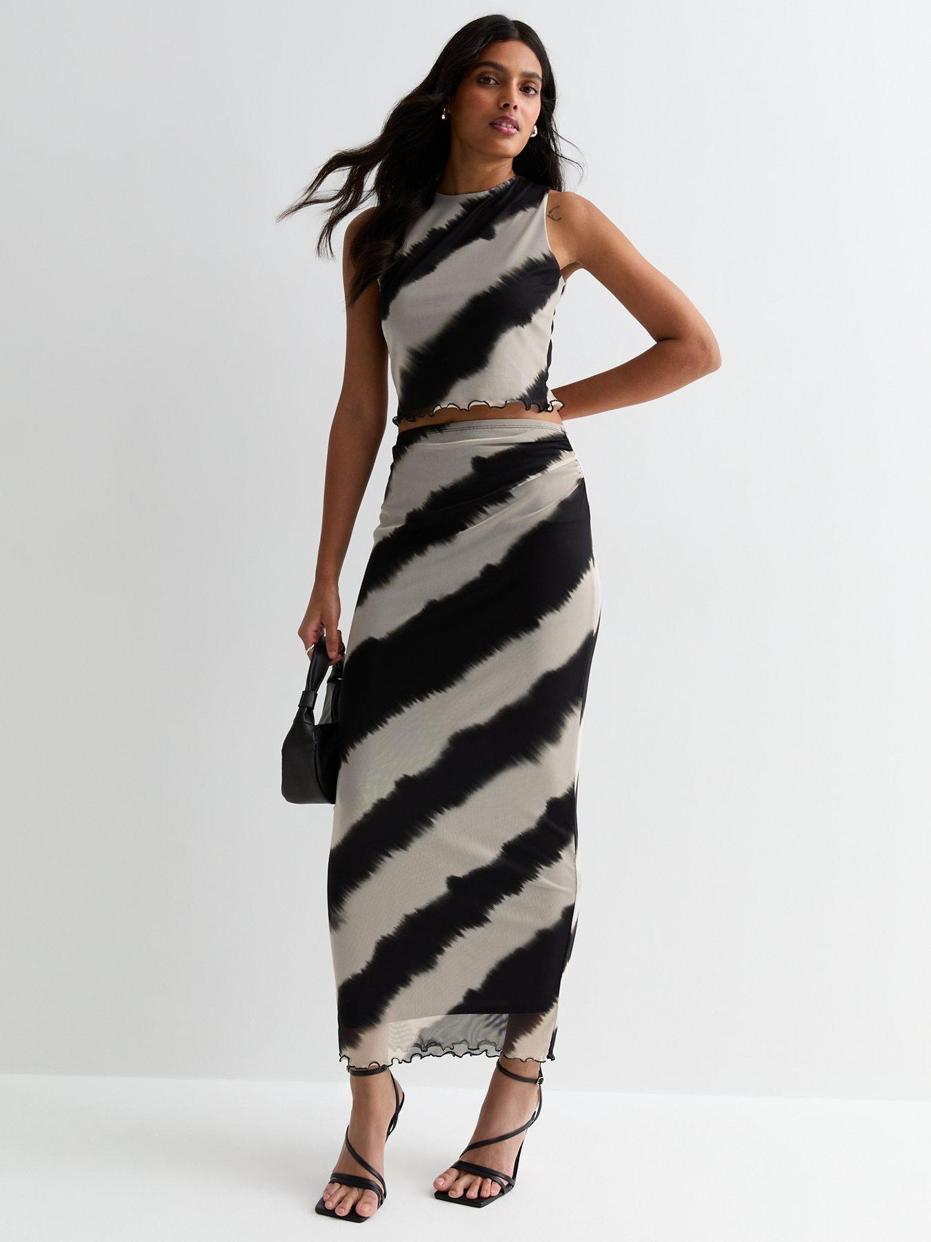 Black Diagonal Stripe Bias Cut Maxi Skirt New Look Very well made.