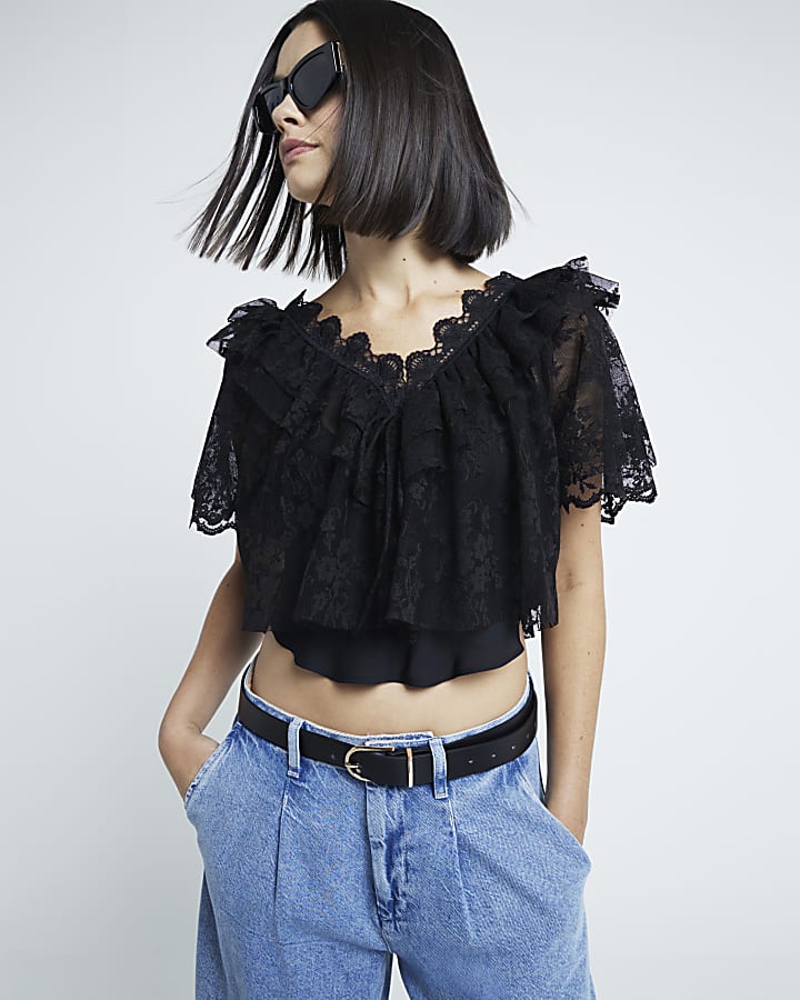 Black Short Sleeve Lace Bardot Crop Top Very well made.
