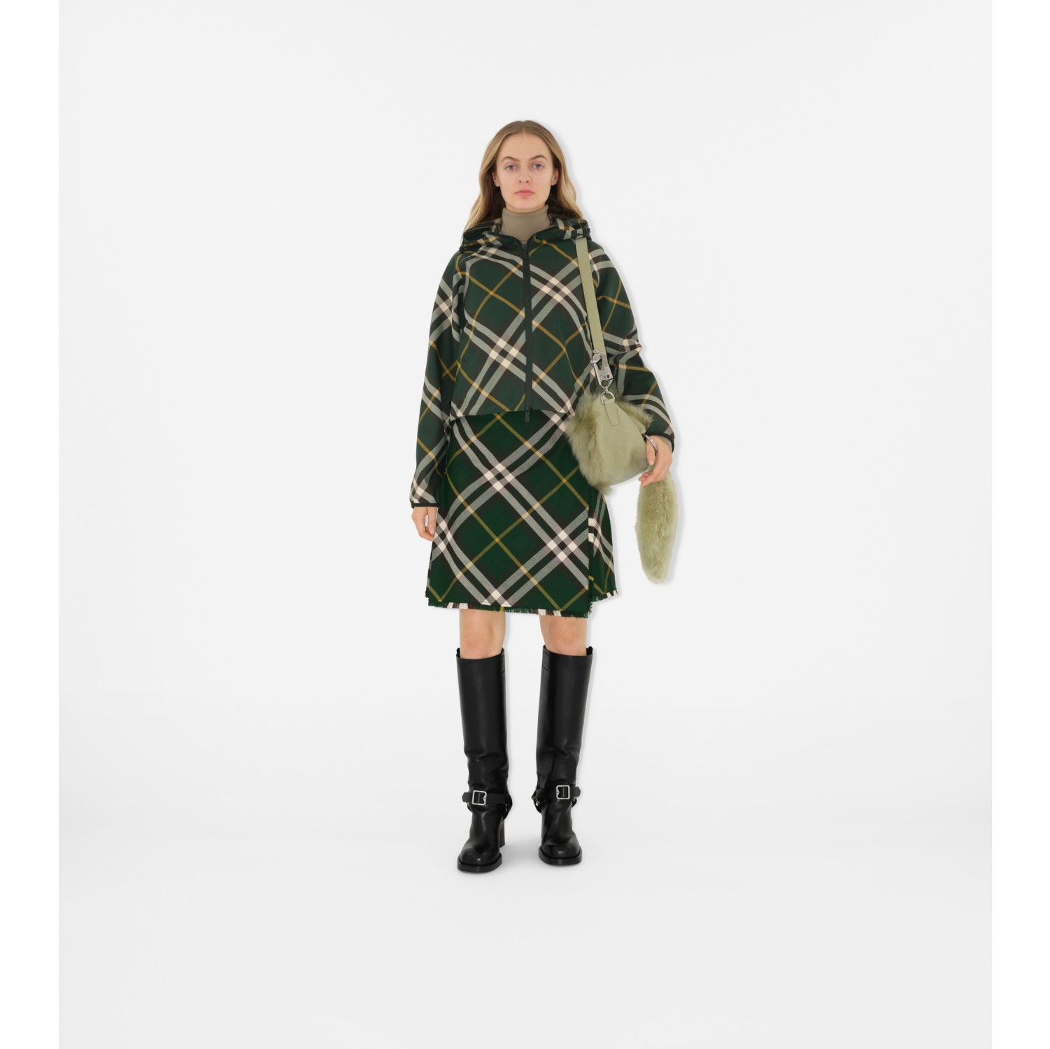 Cropped Check Lightweight Jacket in Ivy Women Nylon Burberry Official Very well made.