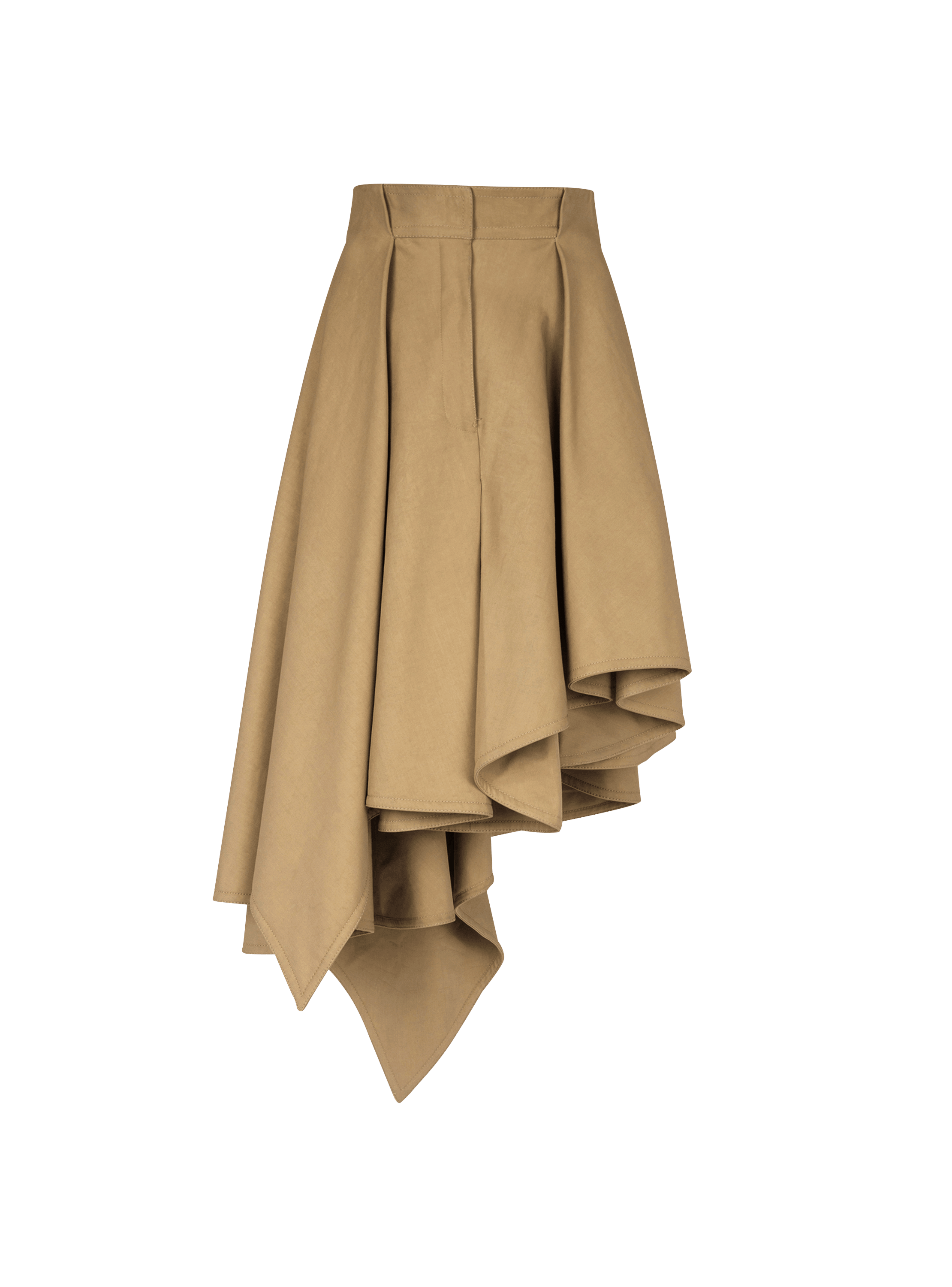 Cotton A Line Pleated Midi Skirt in Khaki Very well made.