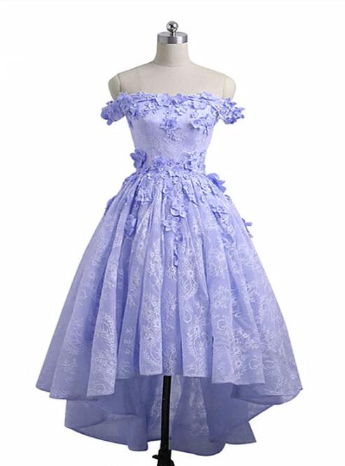 Lavender High Low Lace Party Dress Cute Off Shoulder Prom Dress 2020 on Luulla Very well made.