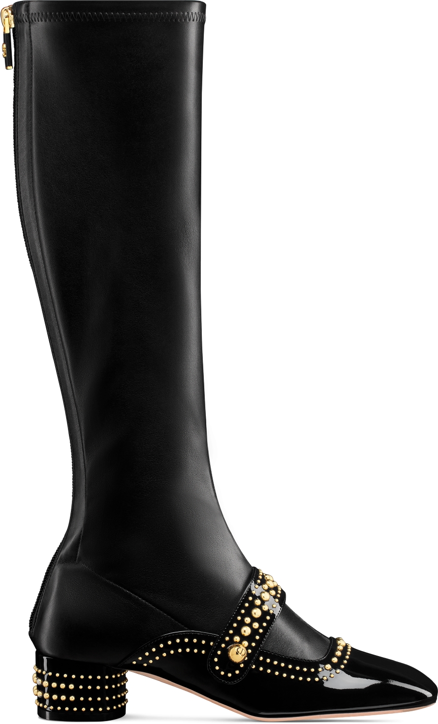 Belle D Heeled Boot Black Patent Calfskin and Gold Finish Studs DIOR Very well made.