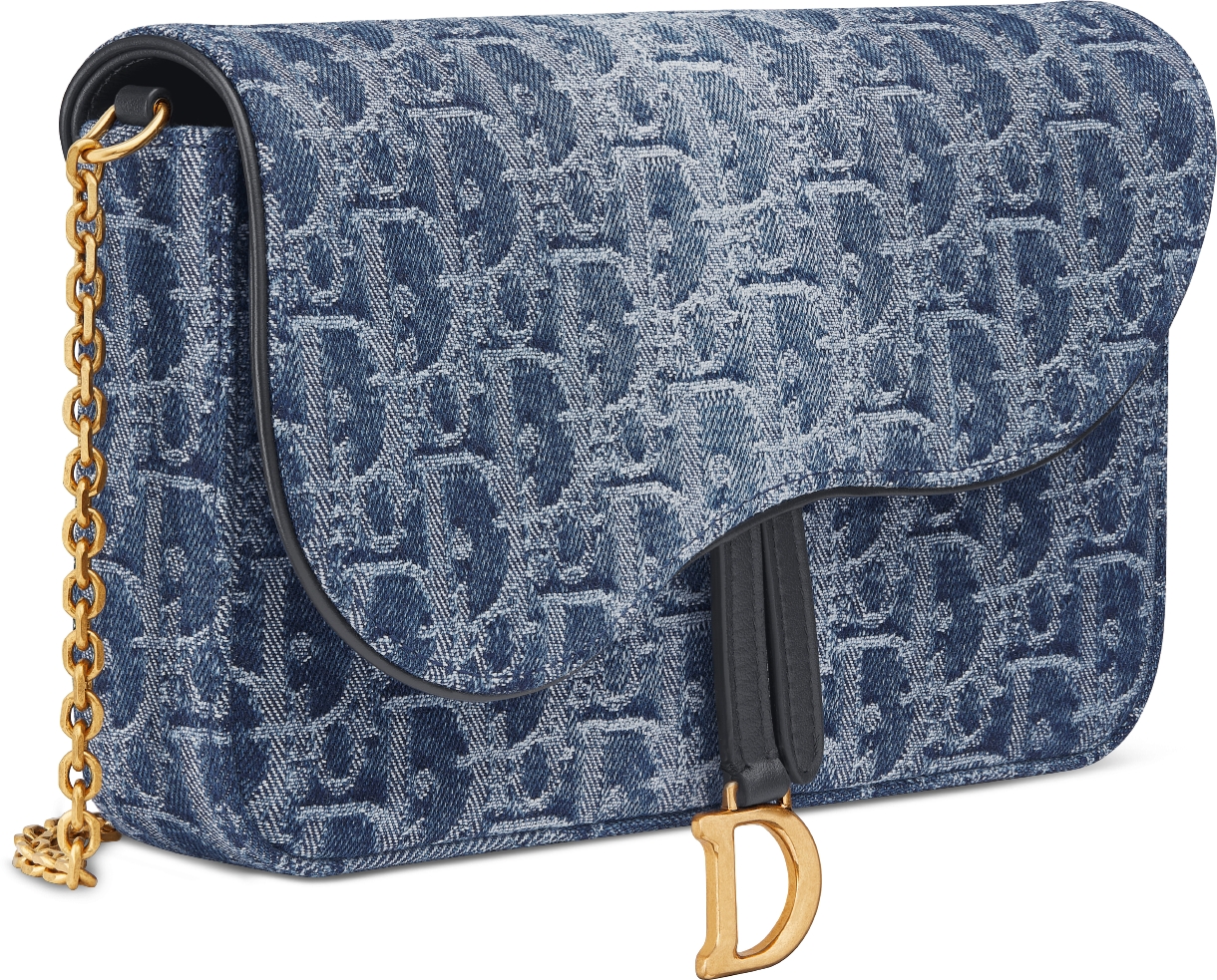 DIOR Saddle Pouch With Chain Blue Denim Dior Oblique Jacquard Women Very well made.