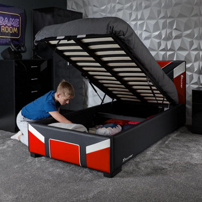 X Rocker Cerberus Ottoman Gaming Bed 4ft Small Double Upholstered Bedstead with Storage Blue 120x190cm Mattress Included DIY at B Q Very well made.