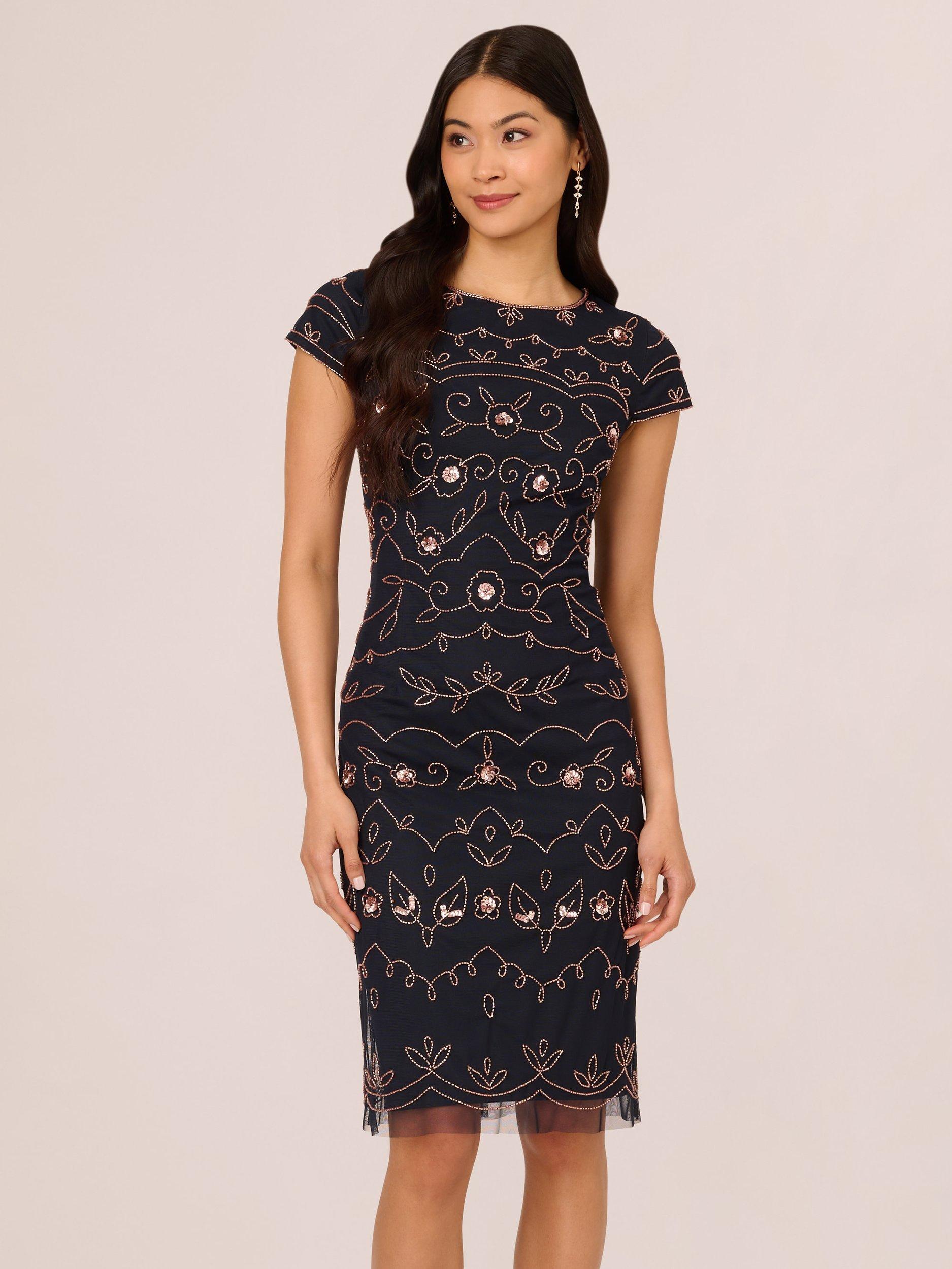 Adrianna Papell Studio Bead Sheath Dress Navy Rose Gold Very well made.