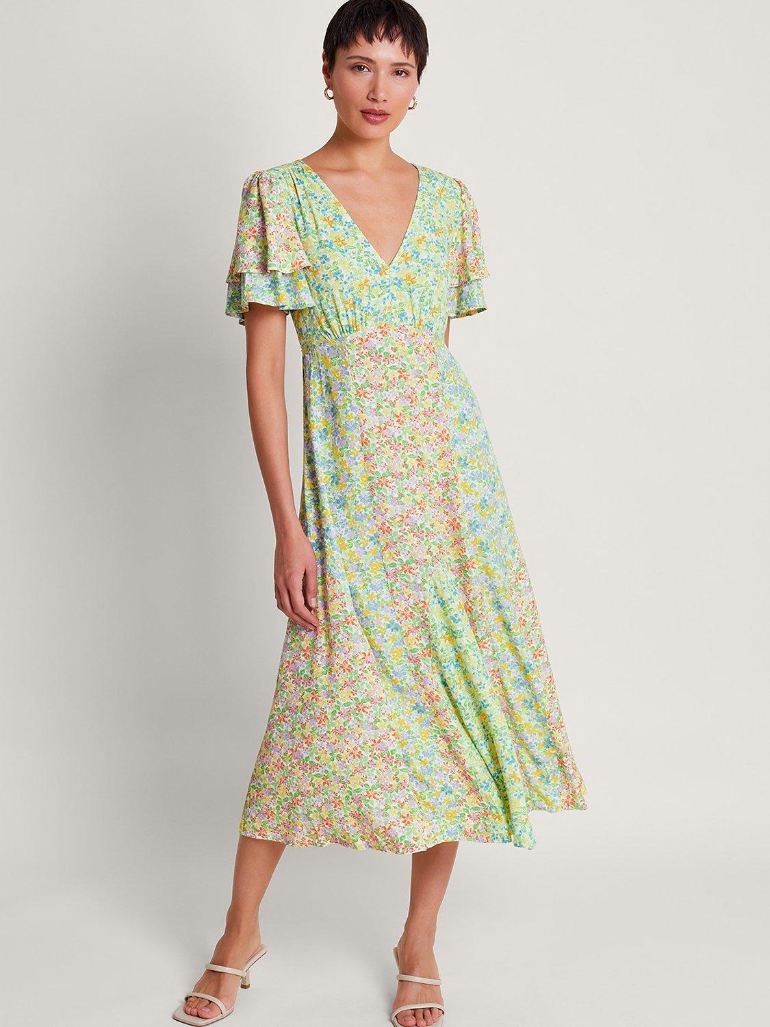 Monsoon Tatum Floral Print Midi Tea Dress Multi Very well made.