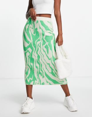 Monki Recycled Polyester Knit Swirl Midi Skirt In Green ModeSens Very well made.