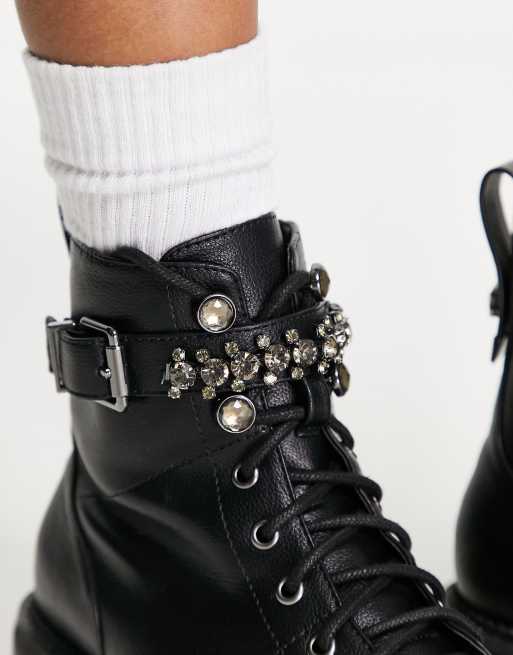 Office Astonish embellished strap lace up ankle boots in black Very well made.