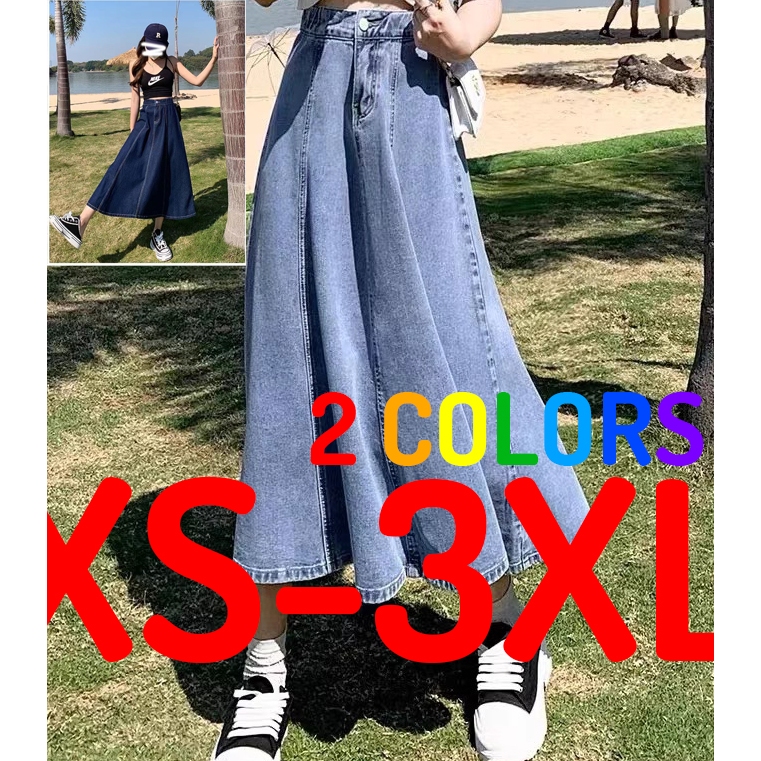 READY STOCK Women Plus Size Denim Jeans Elastic High Waist Stretchable A Shape Maxi Long Skirt Size XS 3XL Very well made.