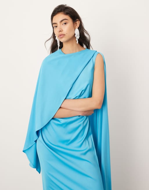 ASOS EDITION satin drape detail maxi dress with ruched waist in aqua blue ASOS Very well made.
