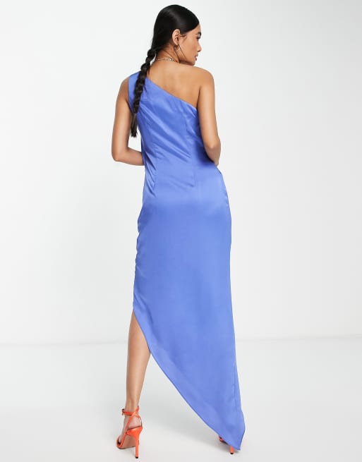 ASOS DESIGN satin one shoulder flare sleeve maxi dress with back detail in blue Very well made.