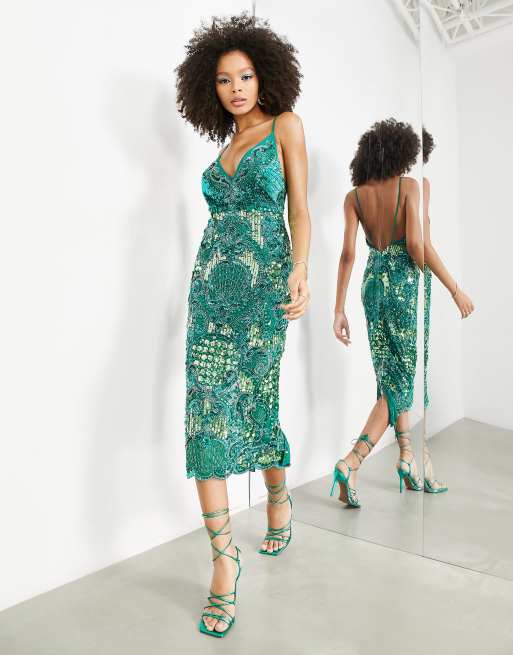 ASOS EDITION scallop embellished jewel and sequin cami midi dress in green ASOS Very well made.