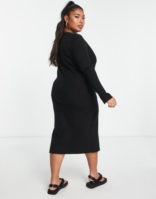 ASOS DESIGN Curve knitted midi dress with square neck in black Very well made.