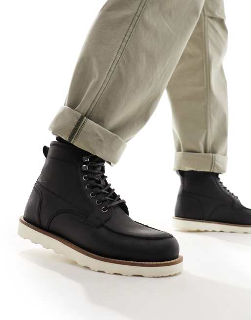 ASOS DESIGN lace up boot in black leather with contrast sole Very well made.